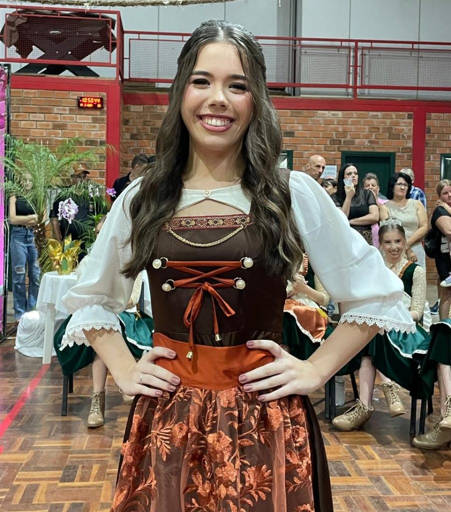 A estudante e representante da Seubv, Ana Clara Ruppenthal, 18 anos, foi eleita Garota Imigrante 2026. O concurso ocorreu no último sábado à noite, 14, no ginásio Tonhão, Vila Santo Antônio.