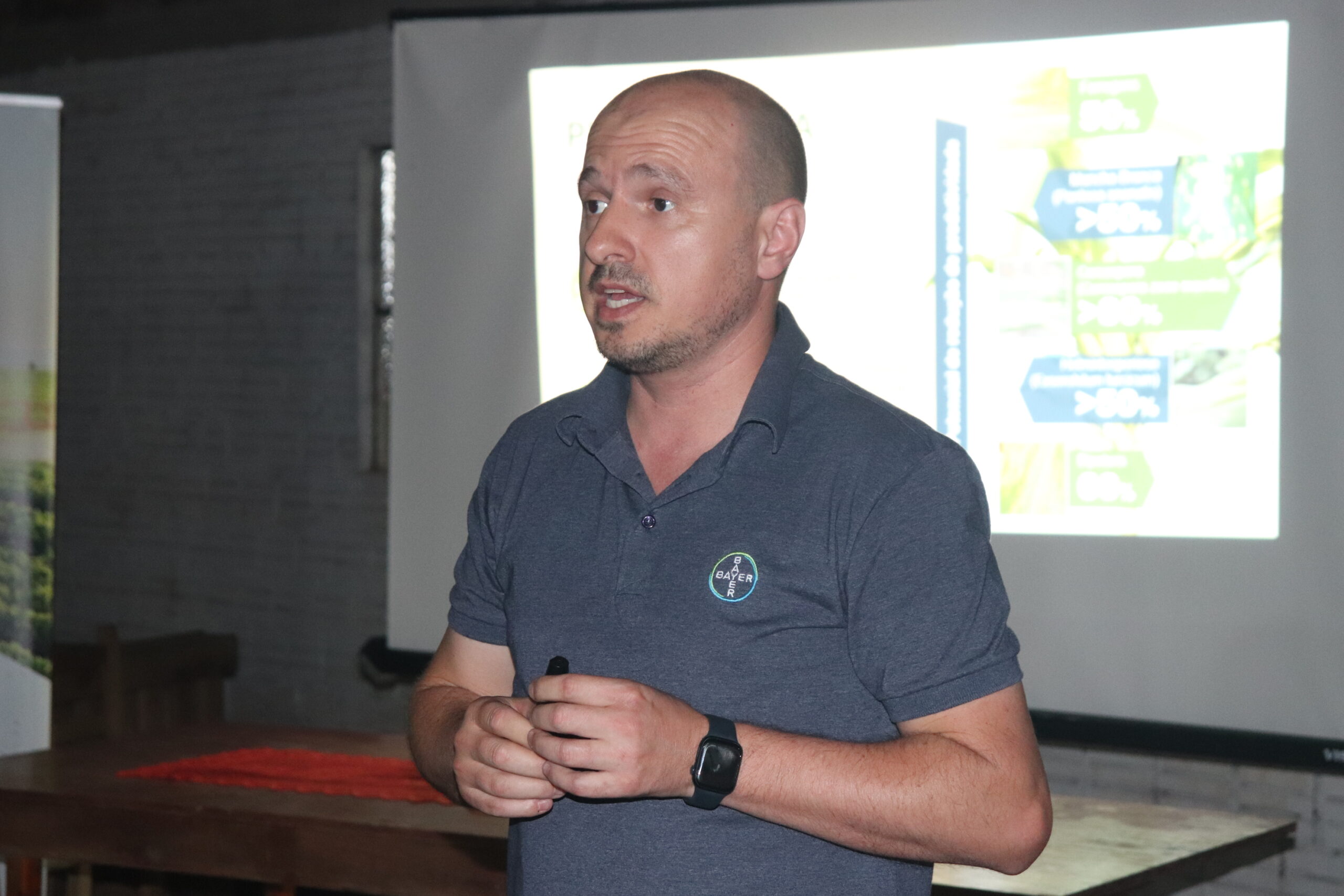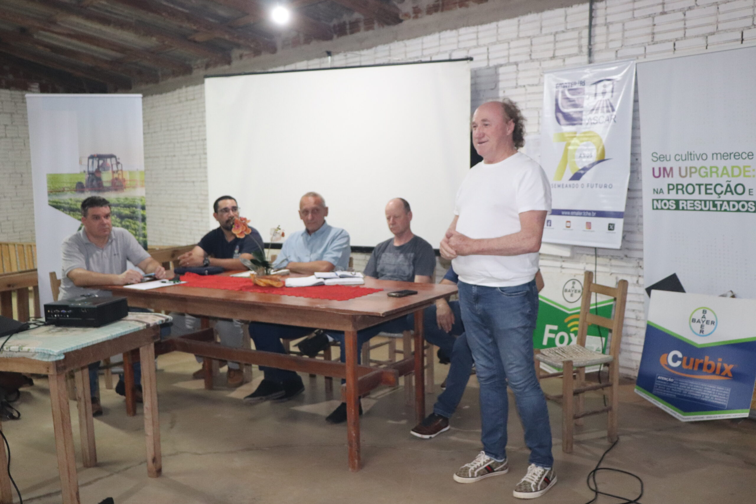 O encontro em Arroio Bonito teve também palestra com o engenheiro agrônomo Jonis Gelain, parceria Arla Cooperativa e Bayer. O tema principal tratou do ‘Manejo de Pragas e Doenças na Cultura da Soja’.