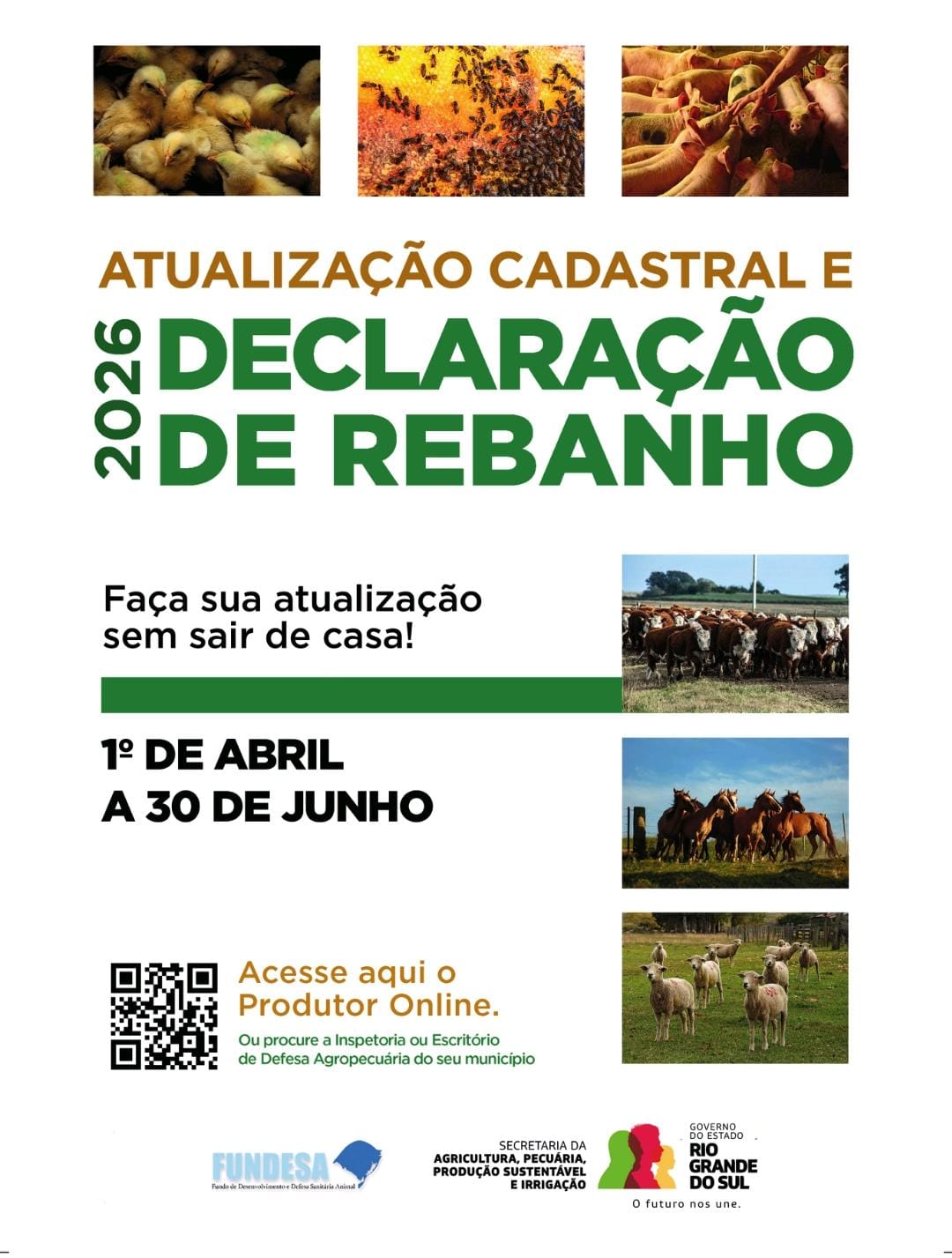 No último dia 1º de abril começou o período para a Declaração Anual de Rebanho no Rio Grande do Sul para o ano de 2026. O prazo vai até 30 de junho.