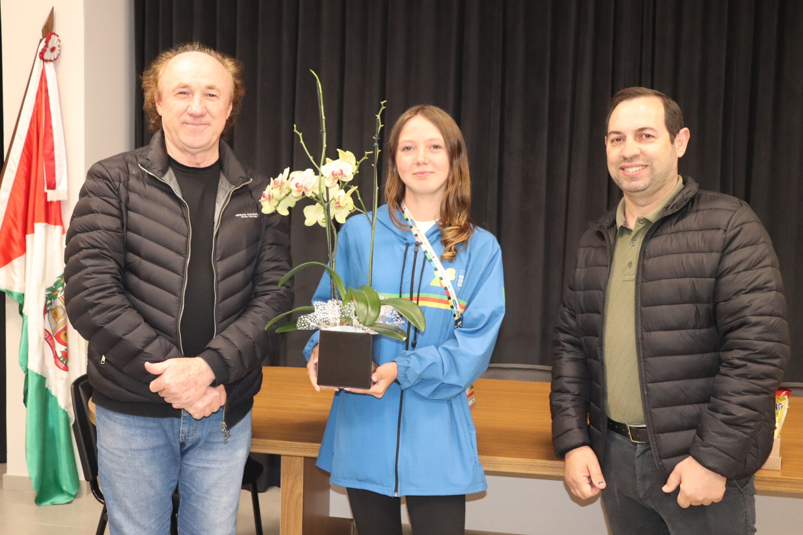 Os Jogos Escolares Brasileiros (JEBs) aconteceram na cidade de Uberlândia, reunindo milhares de atletas. O prefeito Arly Stöhr (Flecha), vice Luciano André Vargas, Emerson Kirch (presidente da Câmara de Vereadores) e secretária da Educação, Eunice Heuser, participaram da recepção. “Fiquei muito contente com a participação dela na competição (JEBs). É um orgulho para Mato Leitão. Ela já conseguiu em outras oportunidades destaque em nível estadual (Jergs) e agora também em nível nacional. Mayane levou o nome de Mato Leitão pra muito longe. A Prefeitura sempre apoia esses talentos, nas mais diversas modalidades. Nesta competição, inclusive, auxiliamos o professor Jacson Richter para acompanhar Mayane em Minas Gerais. Um grande orgulho pra todos nós” destacou o prefeito.