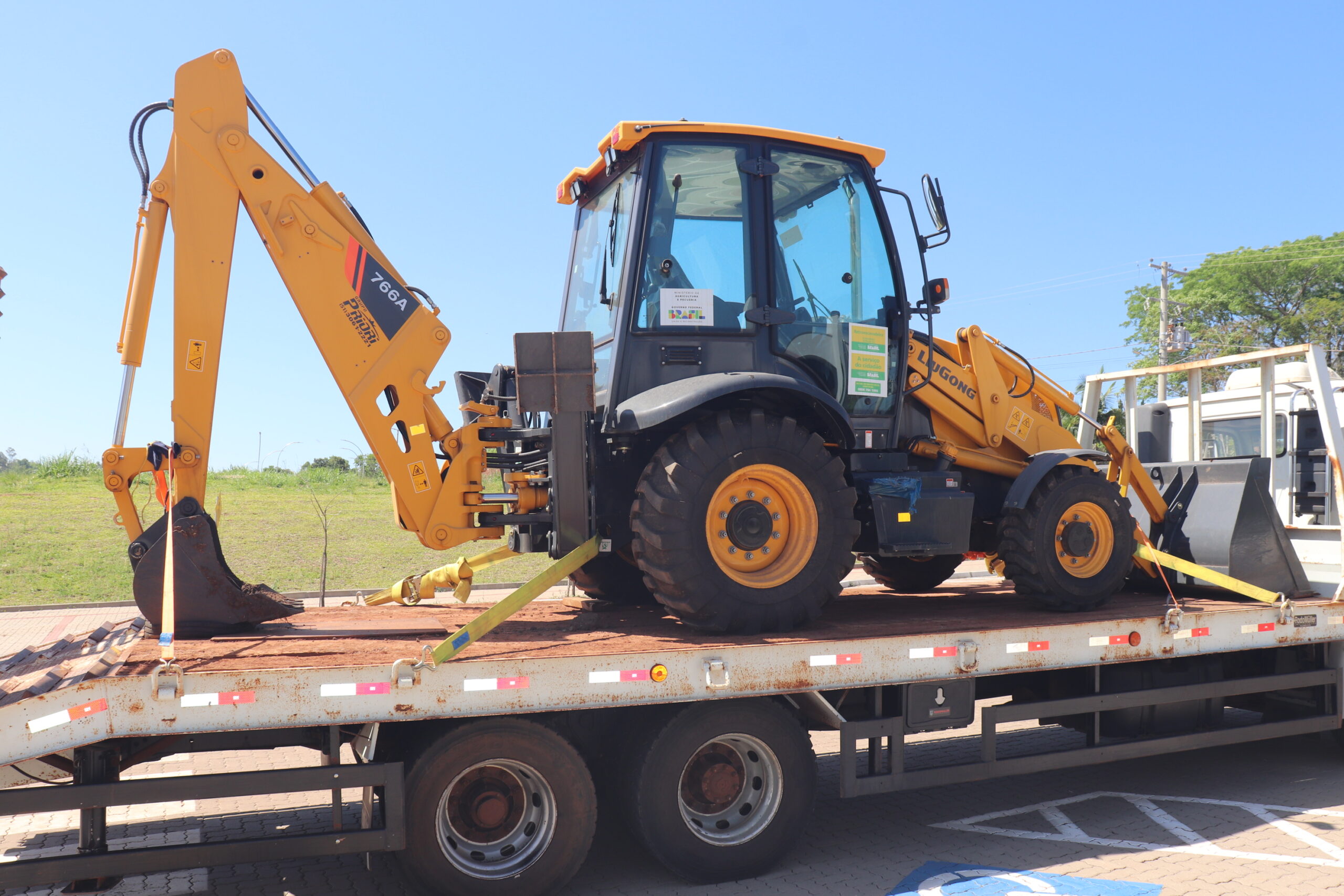 A prestação de serviços aos agricultores de Mato Leitão conta a partir de agora com um importante reforço. A Secretaria Municipal da Agricultura e Meio Ambiente recebeu uma retroescavadeira nova, da marca LiuGong, do Governo do Estado.